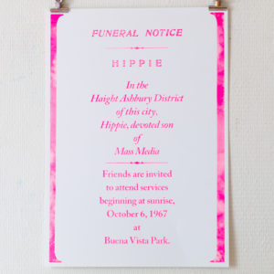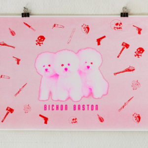 Une affiche sans marges, un travail expérimental de maisonriso jouant l’opposition des genres : un rose fluorescent vectoriel, renforcé par un papier blanc neutre.