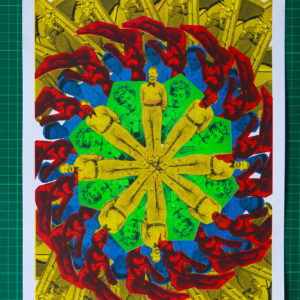 Seule la risographie peut rendre la finesse de tons et l’éclat des couleurs? l’esquisse non alignée, les aléas de l’aquarelle sont volontairement respectés par un traitement en demi-tons.