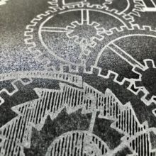 Impression blanc en un passage sur papiers noir et anthracite